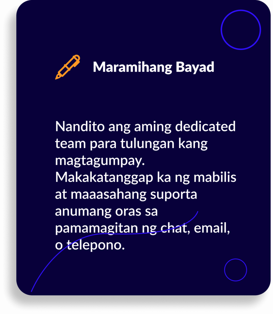 Hindi tulad ng tradisyunal na bangko, ang PhiliPay ay espesyal na idinisenyo para sa cross-border business transactions papunta at mula sa Pilipinas. Nag-aalok kami ng mas mabilis na processing time, mas mababang fees, at mas magandang exchange rates. Bukod dito, may mga feature ang aming platform tulad ng mass payments at multi-currency accounts—na karaniwang hindi inaalok ng karamihan sa mga bangko. Nakatuon kami sa pagbawas ng gastos, pagtitipid ng oras, at pagbibigay sa iyo ng mas malaking kontrol sa iyong international finances.